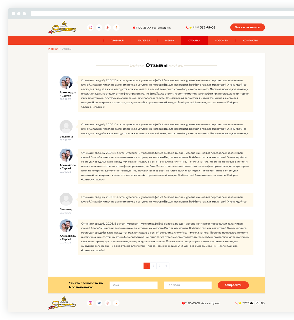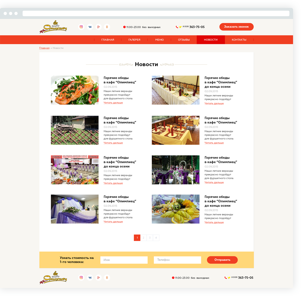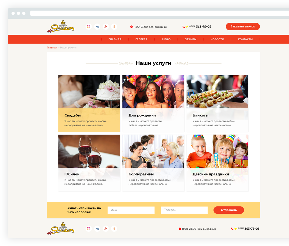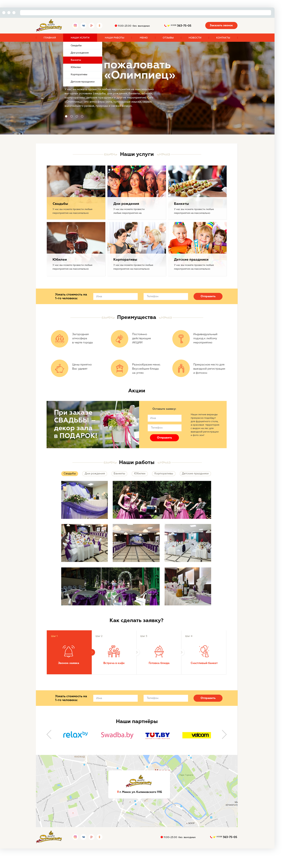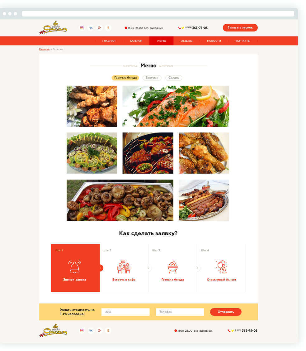 Ключевая задача, которую решала команда разработчиков при создании сайта – достижение максимальной конверсии. Для достижения этой цели тщательно проработана логика, структура и функционал сайта – в итоге было создано полноценное интернет-представительство кафе, дающее пользователям всю необходимую информацию и помогающее сделать верный выбор.