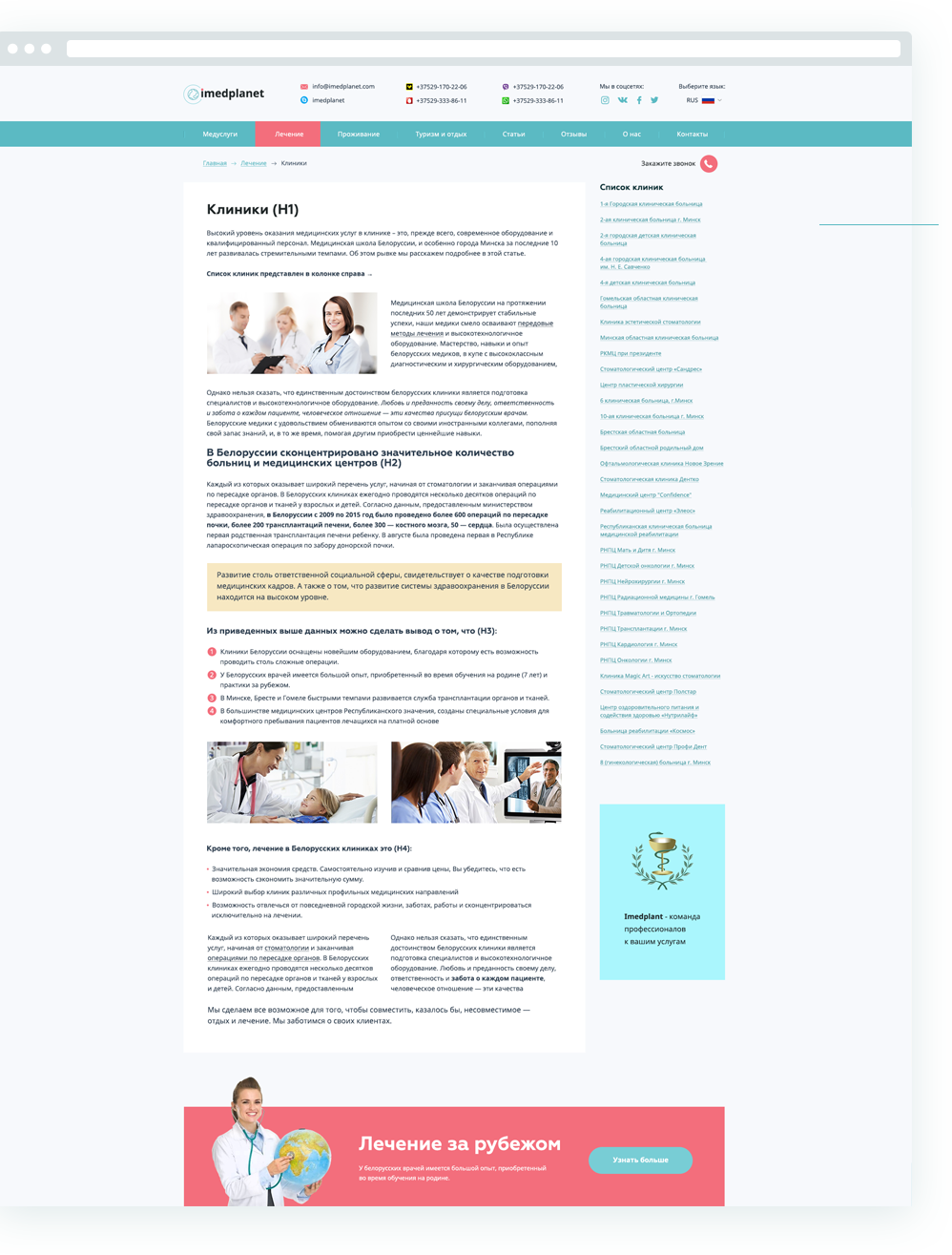 The main page is made in Landing Page format, but many users are more interested in internal pages. Therefore, the site provides a convenient menu of the second level, simplifying navigation while maintaining a well-organized and simple structure.