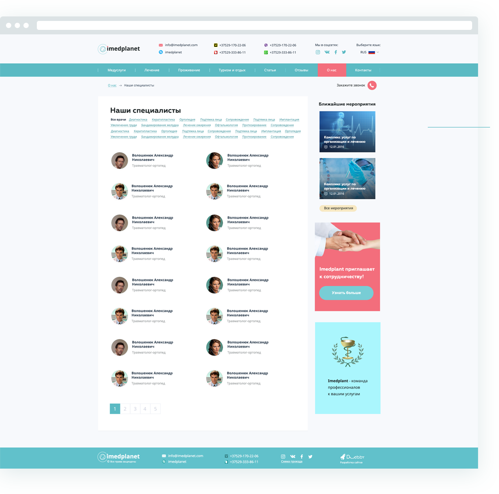 Users trust live people, so we decided to create separate pages with information about the company's specialists. The information is structured and surrounded by a friendly design.