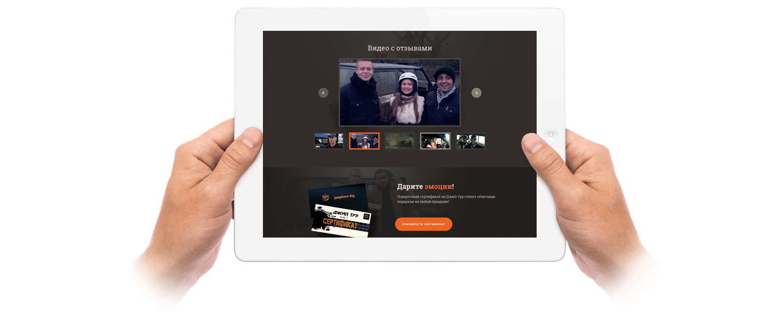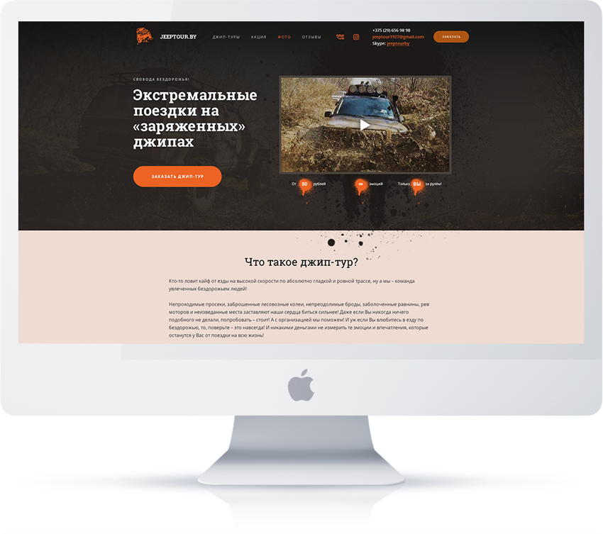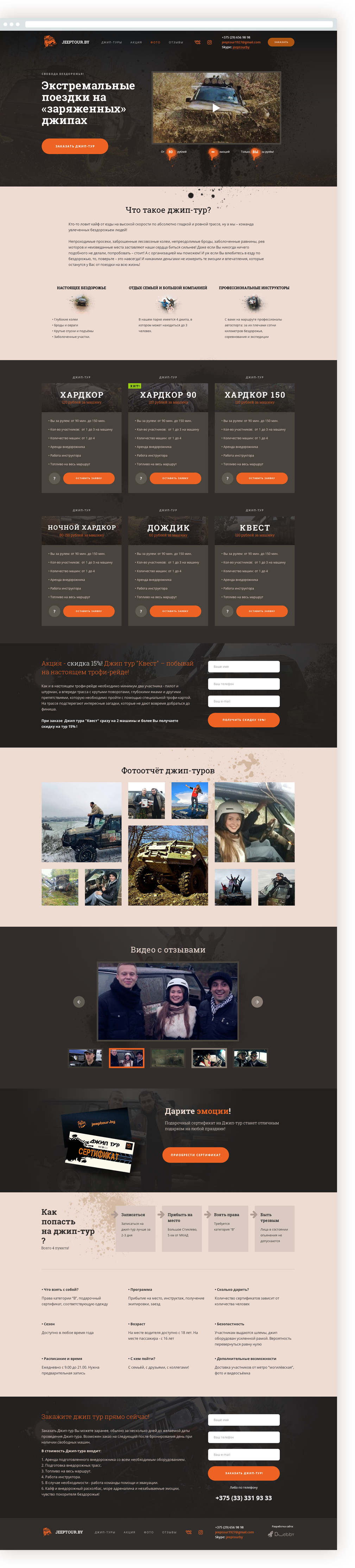 Страница построена на основе модульной системы, имеет блочную структуру с гармоничным переплетением визуальной информации, текстов и форм заказа услуги. Атмосфера создается характерным дизайном в темных тонах и имитацией загрязнений, дополнительно настроение создают фотографии и качественное рекламное видео.