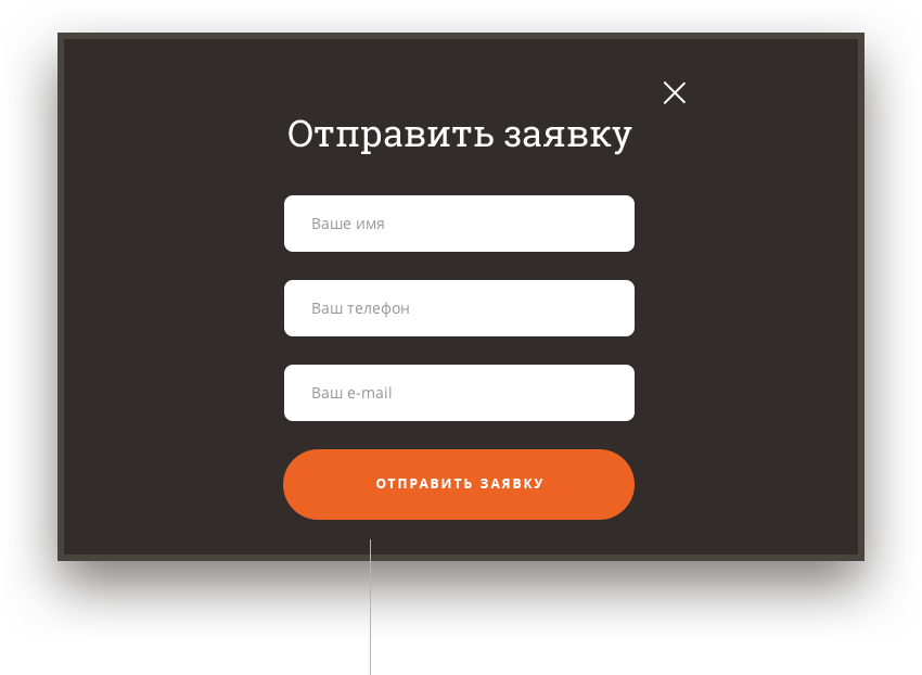 Лаконичная, простая и контрастная форма заявки – важное условие для привлечения клиента. Небольшая, но ясная инструкция для пользователя – дополнительный стимул и инструмент повышения конверсии. А закрепленная в верхнем меню кнопка заказа позволяет пользователю обратиться к специалисту без лишнего скроллинга страницы.